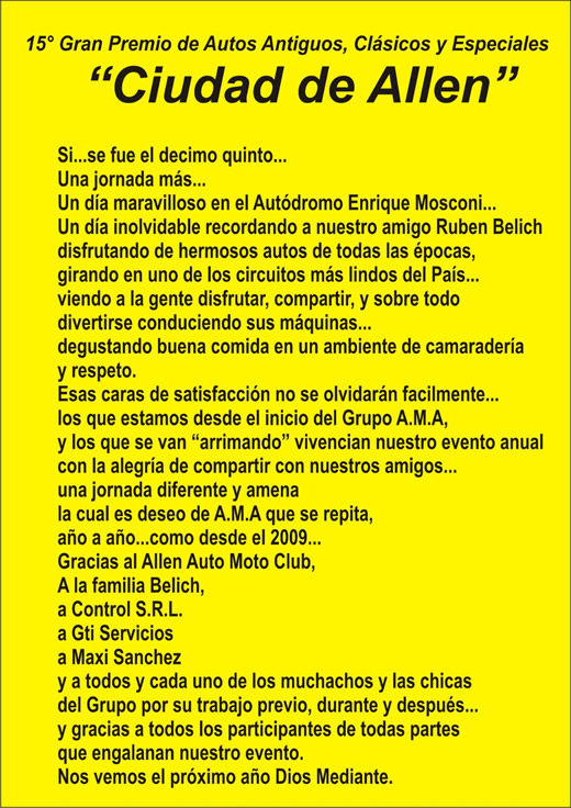 15° Gran Premio de Autos Antiguos, Clásicos y Especiales “Ciudad de Allen”
